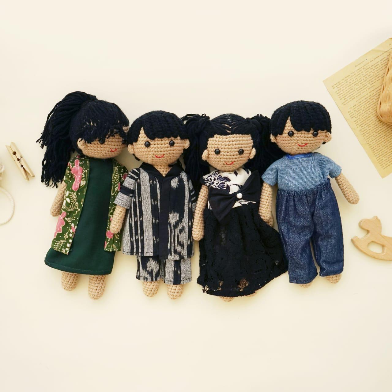 “Boneka rajut ini terbuat dari bahan katun yang lembut, memberikan kenyamanan saat digenggam atau dipeluk. Desainnya yang lucu dan menggemaskan dipadukan dengan sentuhan wastra Indonesia, seperti motif batik atau tenun tradisional, yang menambah keunikan dan keindahan pada setiap detail boneka. Setiap boneka dirajut dengan tangan secara teliti, menciptakan produk yang tidak hanya menarik tetapi juga penuh makna budaya. Kelembutan katun membuatnya ideal untuk dijadikan teman bermain anak-anak atau sebagai koleksi eksklusif. Boneka ini juga dapat menjadi pilihan hadiah istimewa yang memadukan kehangatan dan keindahan budaya Indonesia dalam satu karya yang menyentuh hati.”